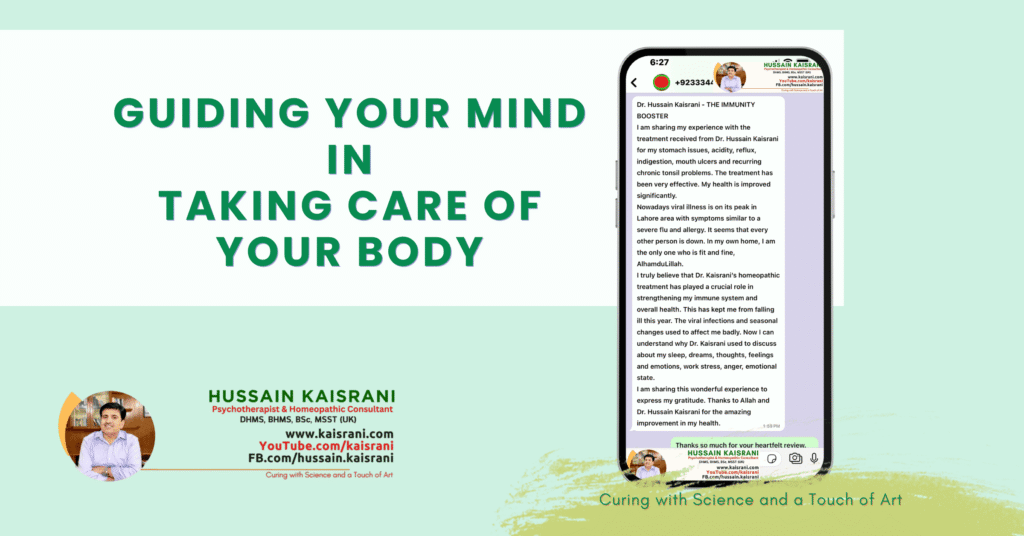 I am sharing my wonderful experience of receiving homeopathic treatment from Dr. Hussain Kaisrani, who has truly proven to be