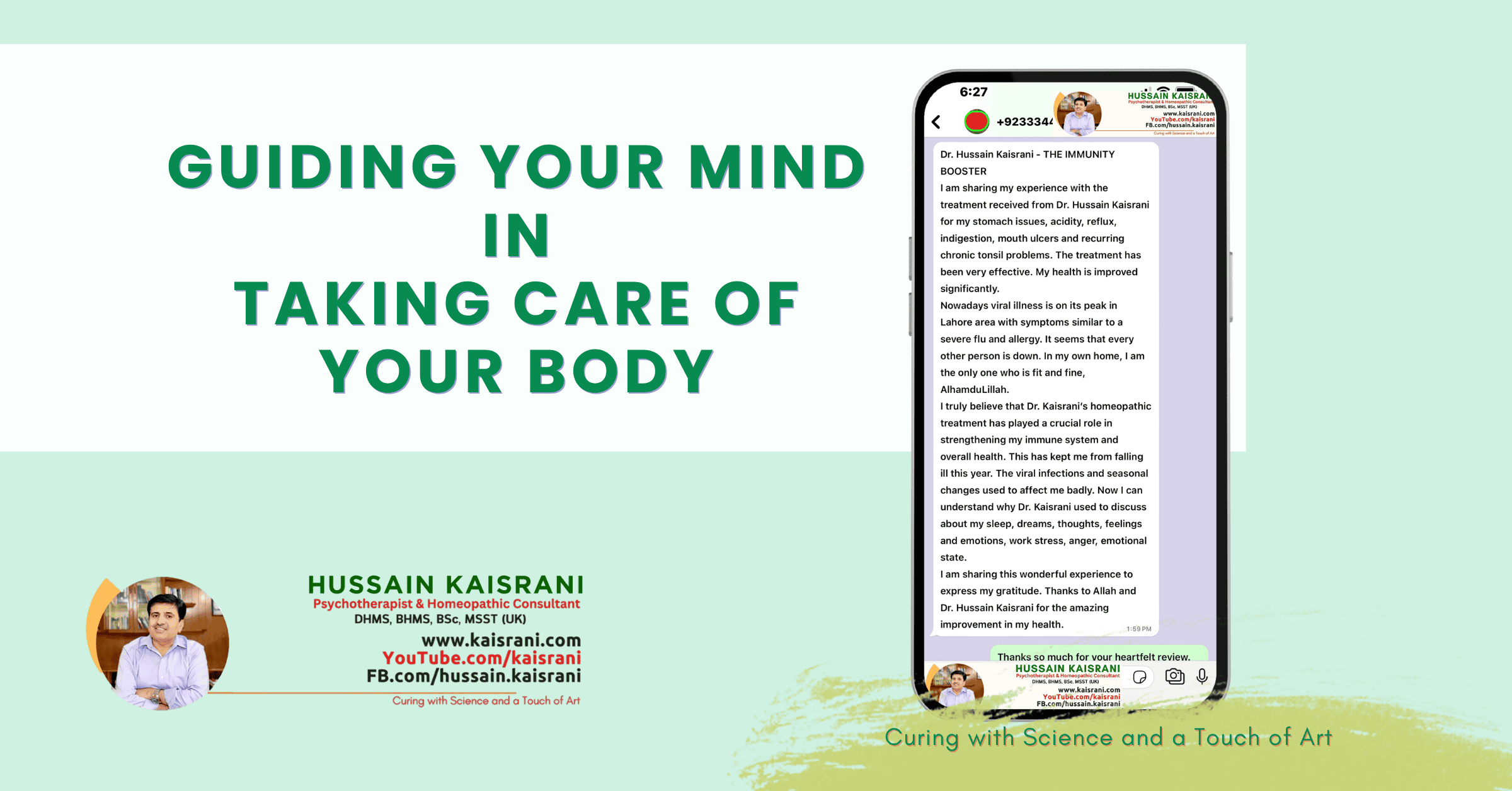 I am sharing my wonderful experience of receiving homeopathic treatment from Dr. Hussain Kaisrani, who has truly proven to be The Immunity Booster in my life.