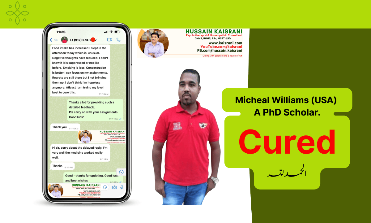 Michael William’s Personal feedback of Hussain Kaisrani’s Homeopathic Treatment