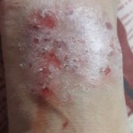 - Dry layers of flakes have been removing since this part of stiff black and raised. Now normal skin is appearing.