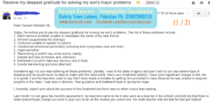 Sometime ago my son was suffering all these problems. Literally, I was in the state of agony and pain that my son has severe type of dyslexia and he would never be able to make with this hard world. Since your treatment started, I have seen significant change in him. He is in grade 3 and his teachers used to say that I have made a mistake by getting him promoted in class three as he was unable to respond properly in the class. I was also in distress. Your guidance and treatment kept on giving me hope.